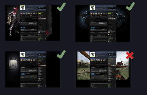 3张个人资料背景同样为最基础的基数,所需要的尺寸为1920宽,高度随开发者喜欢,JPG格式并且小于350kb即可。需要注意的就是图像左右边缘与底部过渡为黑色最好,避免图片与背景之间出现交界色。
