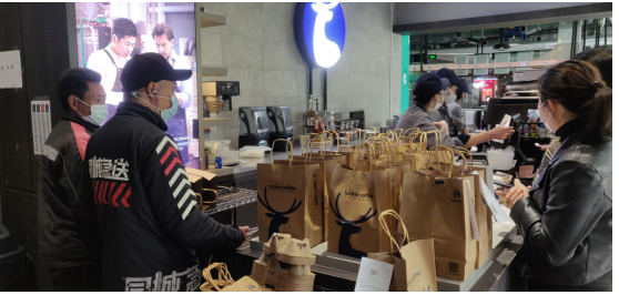 “上午10点多,瑞幸门店已经出现爆单了,全部忙都忙不过来。”4月3日下午4点半,一位顺丰同城快递小哥告诉《棱镜》,他已经送了30多单瑞幸咖啡,几乎是平时的两倍,有些商圈因为人手不足,临时找来一些兼职快递员。
