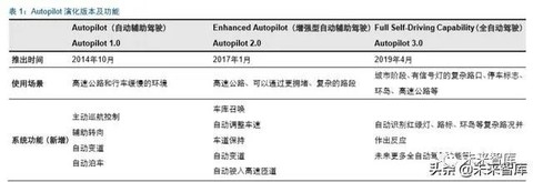 顺利实施 技术当头,Autopilot 为特斯拉提供强大的品牌壁垒。特斯拉成为全球电动车标杆,与 其 Autopilot 密不可分。自 2014 年 10 月推出时,Autopilot 1.0 版本已实现了 L2 级别辅 助驾驶,领先行业让广大驾驶者能体验到辅助驾驶的功能。经历 4-5 年演变,目前 Autopilot 已演化至 3.0 版本,其搭载的全自动驾驶计算机 FSD 足以助力特斯拉实现全 自动驾驶功能,目前Autopilot累计行驶里程已超过22亿英里,是行业自动驾驶的标杆。