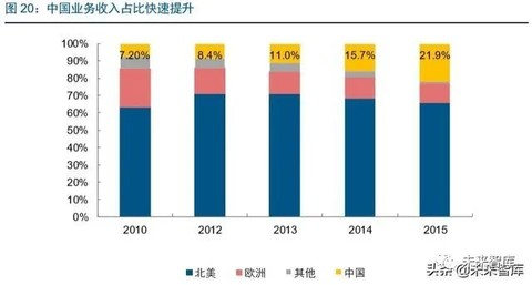 以中国为代表,2000 年以来中国汽车销量与 EPS 搭载率均迎来快速提升时机,公司借 助与长安、东风等通力合作,逐渐扩大在中国影响,并继续积极扩大中国整车厂覆盖面, 近期已取得与比亚迪、吉利、广汽乘用车、长城汽车等主流自主品牌 EPS 合作项目。公司在中国业务比重持续快速提升,由 2010 年的 7.1%提升到了 2015 年的 21.9%。