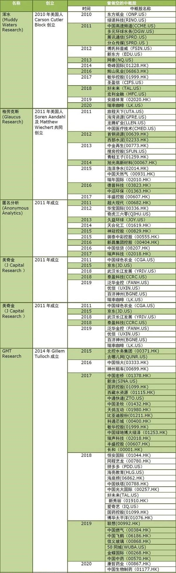 在成熟的资本市场,市场化的做空机构是必不可少的力量。做空机制一直是存在于美国资本市场的合法交易,早在1991年,就有25家只做空头的基金掌管了大约30亿美元的资产。浑水公司成立10年,大约做空18家中概股(与中国联系密切或中国企业)。自2010年成立至今,浑水做空的中概股均名声不小,例如