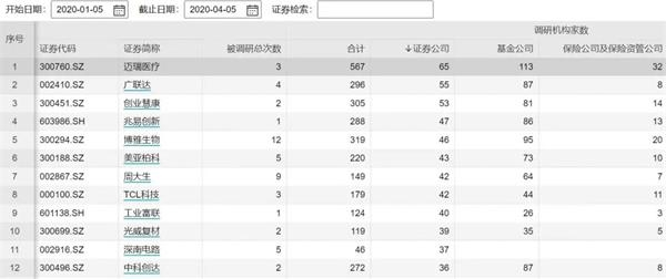 近期被国内部分证券、保险、基金等机构调研的上市公司情况。