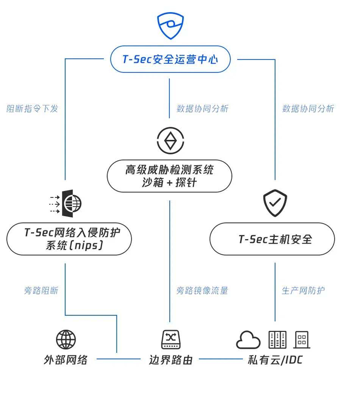 在某银行客户的重保项目中,腾讯安全运营中心(专有云)与T-Sec 网络入侵防护系统(NIPS)、T-Sec 高级威胁检测系统和T-Sec 主机安全等安全产品进行高效协同,为客户抵御住了100支国内顶尖队伍的全天候攻击,最终取得了0事件通报、0失分的优秀成绩。