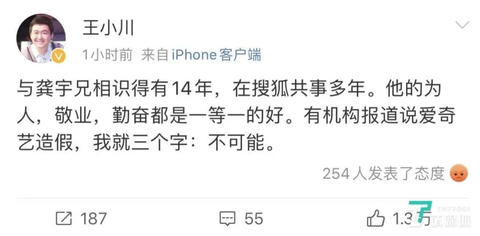 龚宇的好友,搜狗CEO王小川更是在微博上直言,龚宇为人敬业、勤奋,一等一的好,不可能造假。