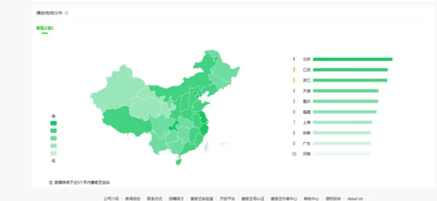 根据其热度指数的解释,这些数字是最近3个月的。新发行的节目的通常模式是热度迅速攀升,之后下降。峰值之后的几个月,我们发现观众人数最多的前10名的省份总是包括人口较少的地区,如澳门、海南、西藏和内蒙古。