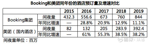 去年美团酒店间夜达到3亿间夜时,我之所以作出这种判断,主要是基于两点原因,一是Expedia的主要优势市场美国的酒店预订行业增速远低于中国,另一个更重要的原因是美团的技术驱动模式和Booking超过Expedia时的变革模式有相似的效应,甚至连预订量的增长数据和曲线都非常相似。