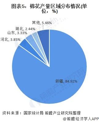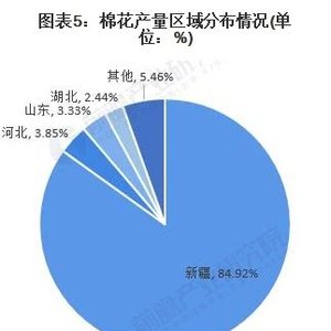 在我国,由于新疆地区热量丰富,日照充足,降水稀少,空气干燥,昼夜温差大和利用雪水人工灌溉,因此,新疆成为了我国最适合种植棉花的地方。我国也长期通过政策补贴等方式促进新疆棉花产业发展,目前,新疆成为全国棉花种植面积和产量第一的地区,2019年棉花种植面积和产量占比均达到四分之三以上。