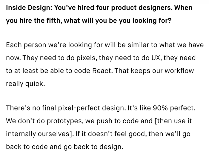 而且他们在招人这个环节,通常要求是全栈型,既能设计产品也能完成交互。