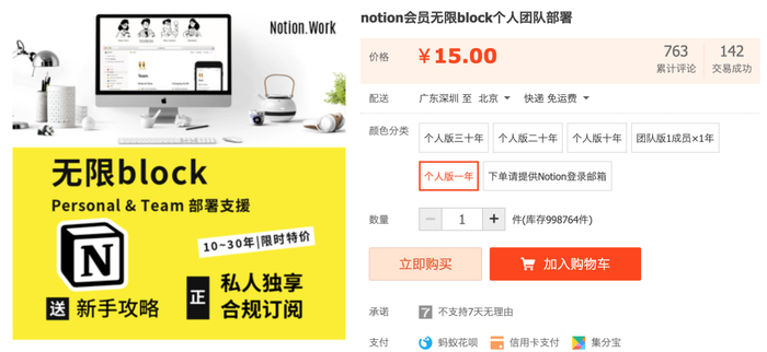 当然,万事都挡不住万能的某宝,现在在某宝上搜索 Notion,已经出现了相应的「服务」。