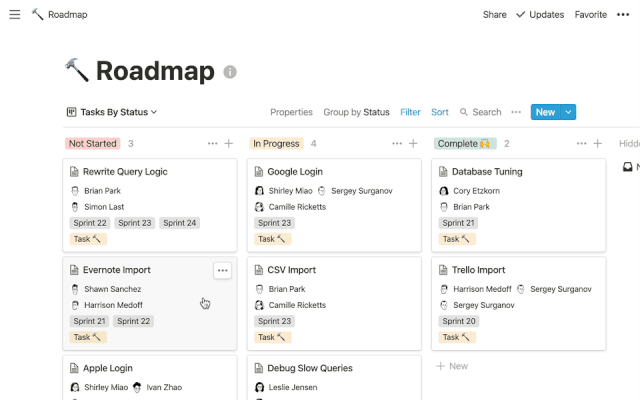 随着产品的迭代,Notion 不仅支持笔记管理、日程管理、wiki 管理,还支持团队协作和任务管理。