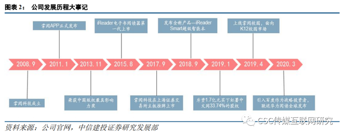 自2008年成立至今,掌阅科技已经成长为国内领军的数字阅读平台。据公司2019年半年报披露,掌阅APP的月活跃用户数超过1.2亿,产品的活跃用户数和渗透率均居数字阅读行业首位。从掌阅科技的发展来看,大致可以分为以下几个阶段。