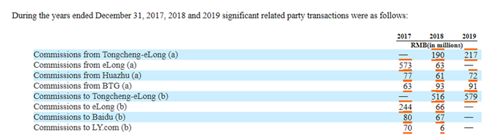 2019年,携程付给同程艺龙的佣金约5.79亿元人民币(8300万美元),同程艺龙付给携程的佣金约2.17亿元人民币(3100万美元)。