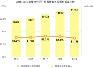 从图中可以看到,麦当劳公司的特许经营营业收入在逐年递增,但是经营利润率有所下降,这反映了EOTF部署的影响(包括劳动生产率的下降,较高的折旧费用)、更高的人工成本和商品成本。
