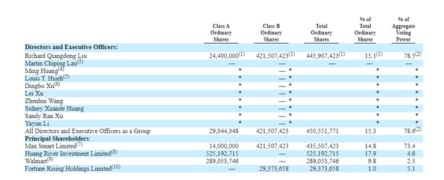 文件数据显示,截至今年2月29日,京东董事会主席刘强东持股15.1%,与去年同期相比下降0.3%,投票权78.5%。此外,腾讯仍是京东最大外部股东,持股比例17.9%,投票权占4.6%。