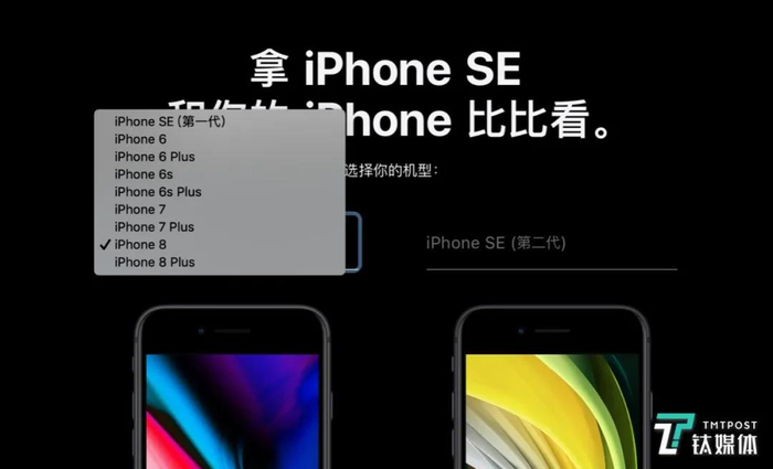 钛媒体从苹果官网iPhone SE的详情页发现,苹果提供给用户在网站打浏览选项当中,增加了与iPhone SE的对比机型,这些机型除了情理之中的 iPhone SE (第一代),还有iPhone 6、iPhone 7、iPhone 8三个系列的产品。