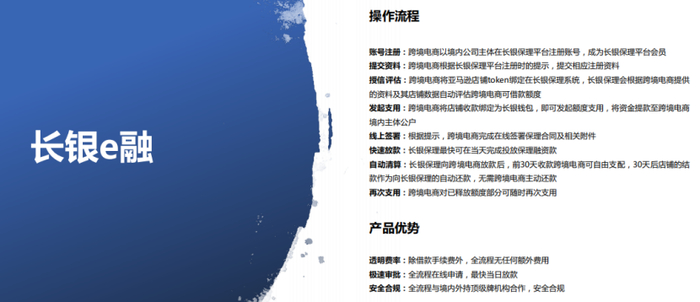 包括长银e融、长银e贸、长银钱包等多款创新保理产品在内,借助金融科技帮助卖家降本提效提高跨境运营效益的同时,长安银科依托全程风控、支用审批便捷的金融保理满足卖家对现金流的迫切需求。打通卖家供应链和收款端的业务串联,助力卖家继续深耕现金流、供应链,加快卖家进阶升级,扩大营收规模!