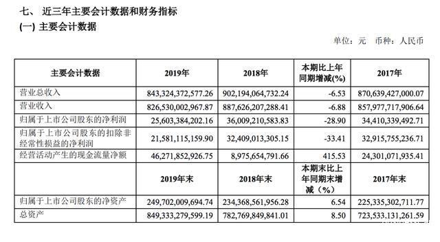 上汽集团虽然是临时凑数的对象,但选它并不是毫无根据。4月13日,上汽集团公布了2019年财报。财报显示,上市公司营业总收入为8433.24亿元,同比下滑6.53%;营业收入为8265.30亿元,同比下滑6.88%;归属上市公司股东的净利润为256.03亿元,同比下滑28.9%;扣非净利润为215.81亿元,同比下滑33.41%。