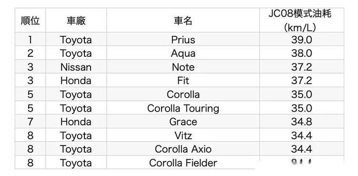 日本官方公布本土2019年最省油十款车,丰田竟占七款!