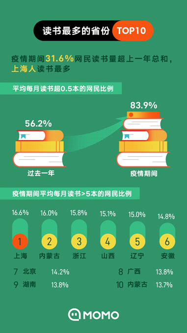 陌陌《2020网民阅读报告》:疫情期间31.6%网民读书量超上一年总和