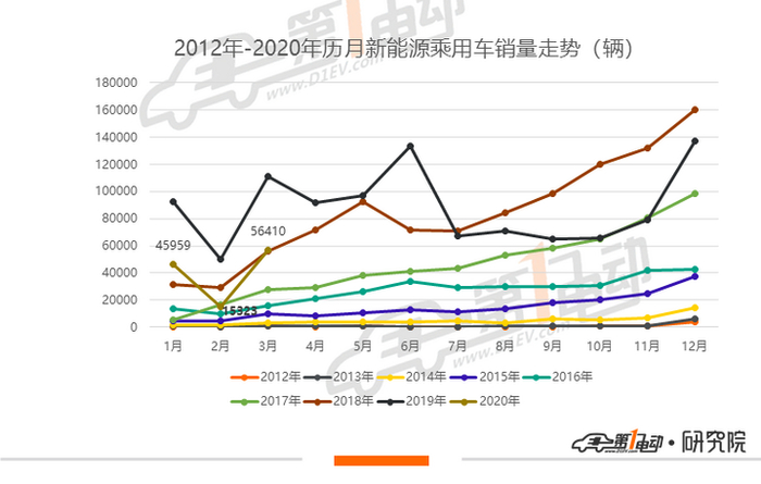 2020年3月,全国新能源乘用车批发5.6万台,零售达5.5万台,与2018年同期水平相当,但相对于2019年3月同比下滑49.2%。