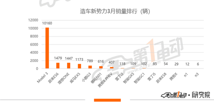 除了持续高走的特斯拉Model 3,其余主要造车新势力销量也在3月开始恢复。