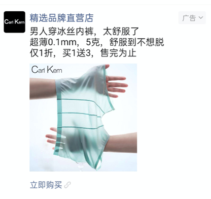 前段时间,你的朋友圈收到冰丝内裤广告投放了吗?