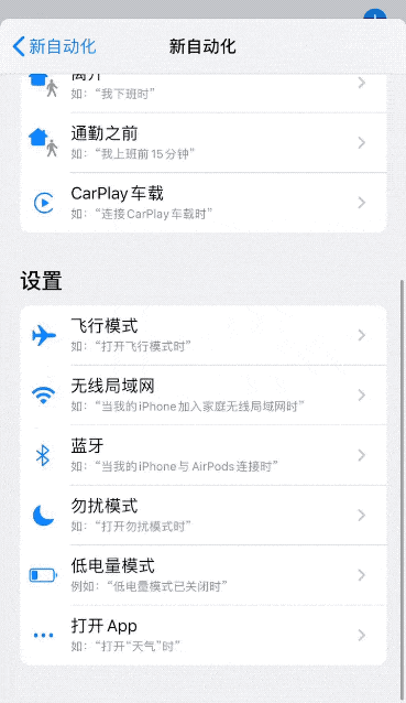 实现原理:利用系统自带的「基于位置的提醒」功能,在快捷指令中建立特定时间段内到达或离开考勤地点时自动打卡。