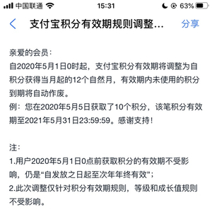 IT之家网友还需要注意:用户2020年5月1日0点前获得的积分有效期不受影响,仍是“自发放之日起至次年年终有效”,此次调整仅针对积分有效期规则,等级和成长值规则不受影响。