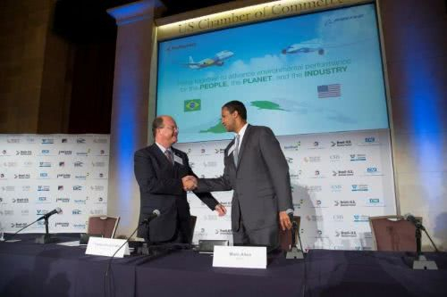 此前,波音已与巴航工业多次合作。这是2015年,时任巴航工业CEO Frederico Curado与时任波音国际部总裁Marc Allen签署“eco示范者合作项目”:这是一个关于减少碳排放与噪音,并增进环保的多方合作测试项目。