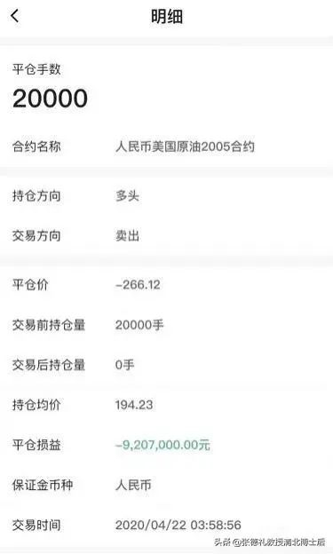 只是,现在明显不是“正常情况下”,美原油05合约跌至负数,即便是没有杠杆效应,投资者也会出现类似期货投资者爆仓情况,需要向经纪机构追加“保证金”,也就是本金全部损失后,需要倒贴。
