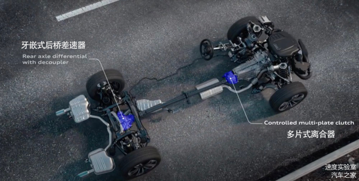 这个“遭人嫌弃”的quattro ultra就顺应这个需求来了,在不需要四驱的时候,脱开中央多片离合器和后桥的牙嵌式离合器这些传动部件,将所有动力给到前轴,减少动力损失,提高传动效率,同时也降低了油耗。