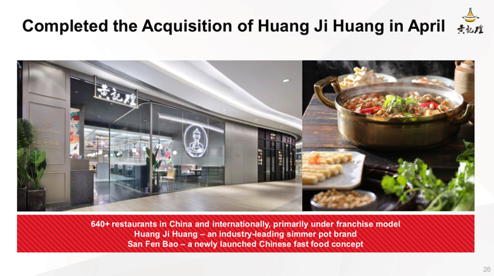 “我认为,以略低于2亿美元的价格收购黄记煌是一笔很好的投资,我们可以利用我们现有的基础设施来拓展这家中餐连锁的业务。从长远来看,这也有助于我们在中餐菜品和服务方面建立专业知识,驱动我们的长期增长。”杨家威在会上回答分析师提问时说。