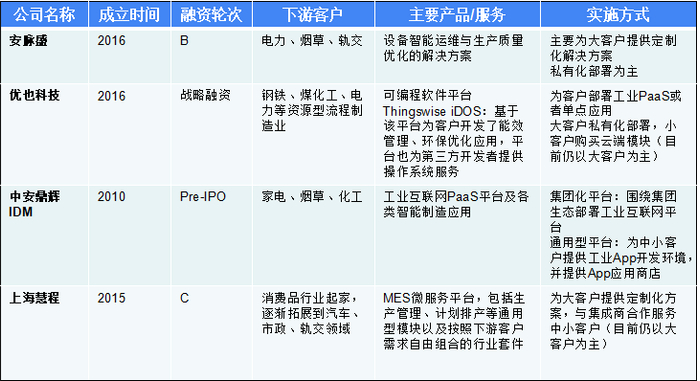 优也科技 主要面向流程制造业提供数字化生产方案以及运营咨询服务,今年获得了用友的战略投资。用友产业投资的投资总监张堃表示,优也的技术平台为各领域客户开发工业App时,可复用80%的平台能力。同时,用友在ERP、MES、PLM、通用工业互联网平台侧有成熟的产品及服务,与优也在生产制造端的数字化能力结合,能为客户构建更完整的数字化生态服务体系。