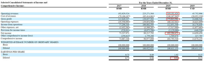 根据年报,微美全息2019年营收3.19亿元(人民币,下同),较2018年的2.25亿元增长41.7%。毛利润1.73亿元,2018年为1.4亿元。经营利润为1.13亿元,2018年为1亿元。净利润为1.02亿元,较2018年的0.89亿元增长14.6%,摊薄每股收益0.94元,2018年为0.88元。