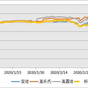 第三,新冠病毒的影响。新冠病毒导致全球经济衰退几乎是板上钉钉的事了。但同时我们也清楚,新冠病毒不会永远肆虐下去。中国和韩国相对成功的防疫,以及意大利逐渐减慢的每日新增确诊人数告诉我们,这波疫情的高峰即将到来并过去。亚伯实验室快速生产的15分钟检验仪器以及明年三月预期能够出现的疫苗让我们确信新冠病毒有一天会被治服,经济也会重新进入扩张周期。在下行周期中,即使是消费者必需品公司也会受到影响。2020年初宝洁的皮肤护理板块有机增长速度高达13%,但新冠必然导致SK-II等高毛利皮肤护理产品销量下滑。然而新冠也会促进家庭护理类产品(如洗手液,清洁剂等)的销售,这部分毛利较低的产品至少在一定程度上可以抵消高毛利皮肤及家庭衣物及饰品类销售的折损。高乐氏和高露洁因为没有衣物饰品及皮肤护理类产品的销售,因此受到的影响会更小。当然,市场对此并非不知。这一事实也显示在了他们股价对比宝洁更好的近期表现上。
