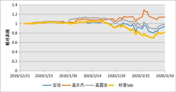 等,表现却非常坚挺,不但下跌幅度远小于标普500,有的甚至不跌反涨。例如,以美东时间2月12日美股开始调整计算,截至4月8日收盘。数据显示,标普500累计涨幅为-18.1%,而同期高乐氏、高露洁、宝洁累计涨幅分别为9.88%、-7.73%和-8.05%,他们也因此被投资者称为“下行经济中的宠儿”。本文笔者将以这三家公司为例,解析美股消费巨头旺盛生命力背后的投资逻辑,希望本文能够为国内投资者投资A股消费龙头带来启发。