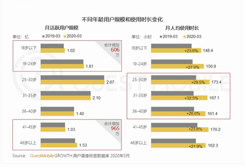 疫情对于B站来讲是一个千载难逢的机遇,由于疫情导致的“长期放假”,24岁以下的年轻人有更多的时间沉浸在视频软件中。根据Questmobile的统计,疫情期间视频工具的同比增长率达到了169.5%,仅次于效率办公和短视频的类别之后。