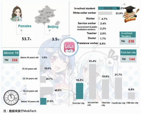 从B站公布的营销通案上,可以找到关于这些年轻人的精确描述,这些人大部分都来自一二线城市,本科率达到50%,可支配收入为3500元(全国居民月平均支配收入为2300元)。