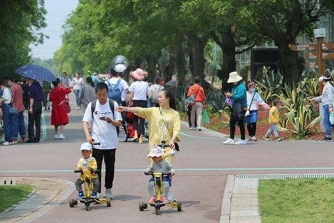 5月2日,江苏南通,众多进行短途游、本地游的游客来到南通洲际绿博园,畅游梯田花海、沙生植物馆等美丽景观。 图/视觉中国