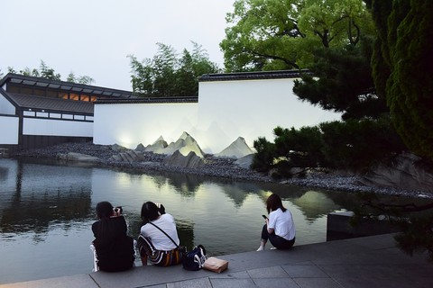5月4日,江苏苏州,五一小长假期间,苏州博物馆延长开放时间,为游客开启夜游活动。 图/视觉中国