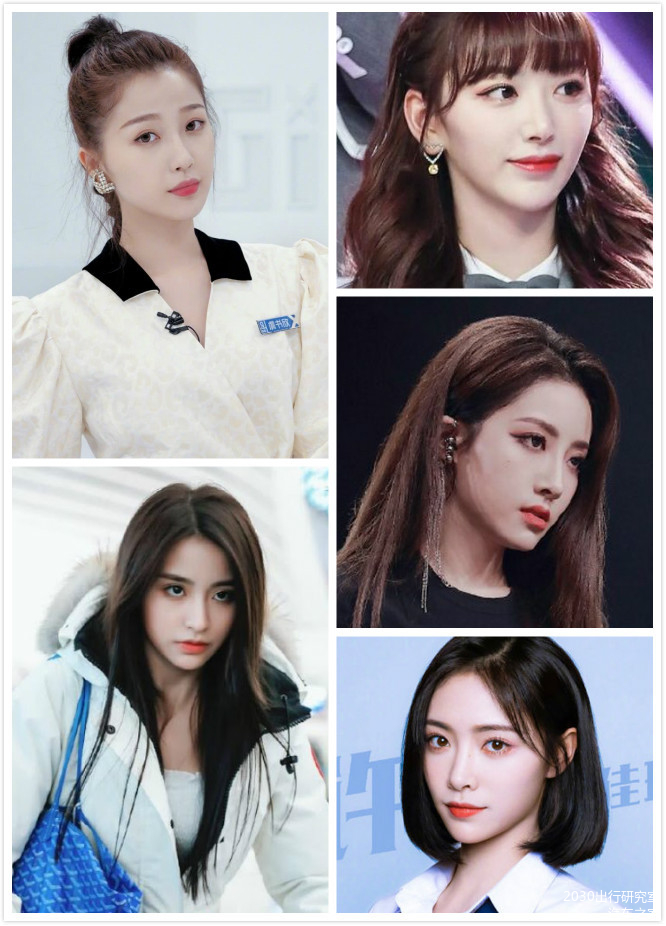 左一:虞书欣 左二:金子涵 右一:孔雪儿 右二:喻言 右三:许佳琪