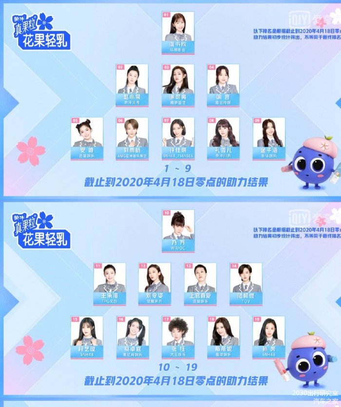 4月18日的《青春有你2》排名