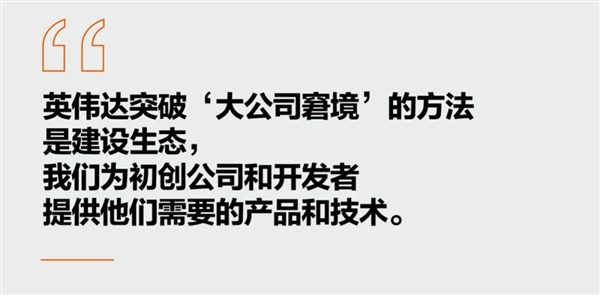 “英伟达突破‘大公司窘境’的方法是建设生态,我们为初创公司和开发者提供他们需要的产品和技术。”刘念宁说,“这样一来可以为初创公司赋能;二来可以加速英伟达的开发速度。”