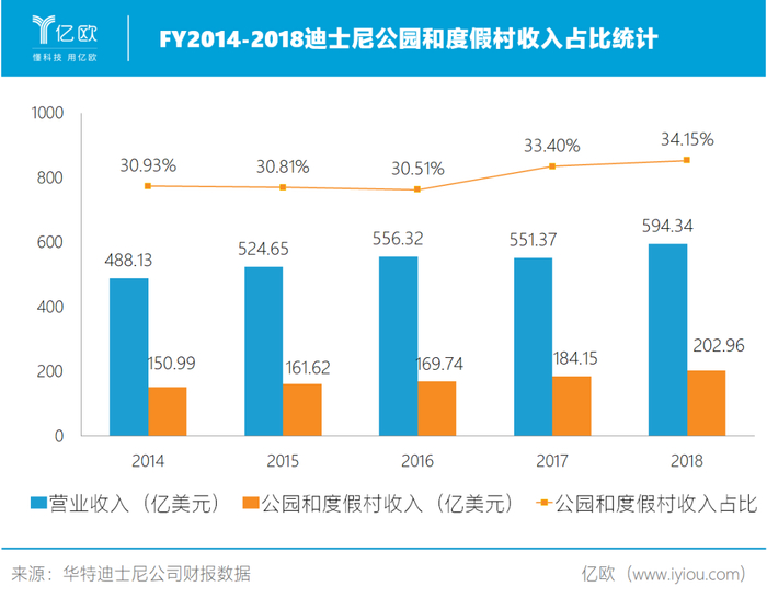 在2019财年中,华特迪士尼公司将“体验和产品”收入划归到了公园和主题乐园业务的收入中,该板块业务的收入占比达到了37%。