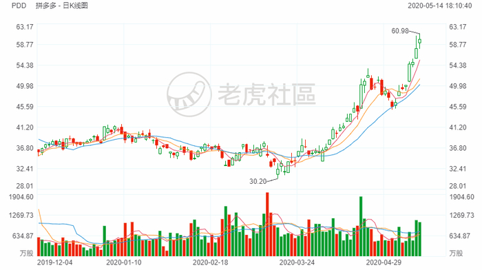 导语:从四月份到现在,拼多多的股票涨幅累计达到53%,在瑞幸带来的中概股风波中,依旧逆势上扬。这并不是拼多多要逆天改命,只是其业务表现显著优于同行。