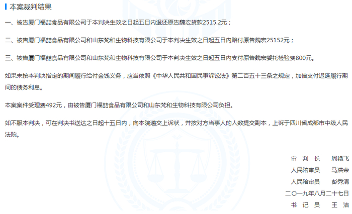 法院支持了原告的诉讼请求,生产商梵和生物和销售方厦门福喆食品有限公司承担相应的赔偿责任。但本案并未获得如安徽阜阳的“大头娃娃”、“长生生物假疫苗案”一般的关注度,假奶粉仍在残害婴儿。