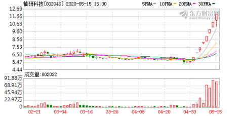 5月15日,轴研科技收获第八个涨停板,报收11.95元/股,刷新了一段时间以来的妖股新高度。公司市值也随之水涨船高,达到了62.66亿元。