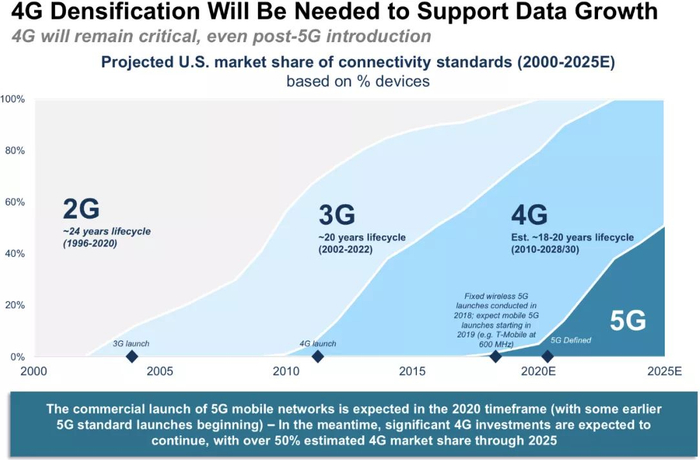 根据预测,2025年时美国的4G数据量仍将占据市场的一半