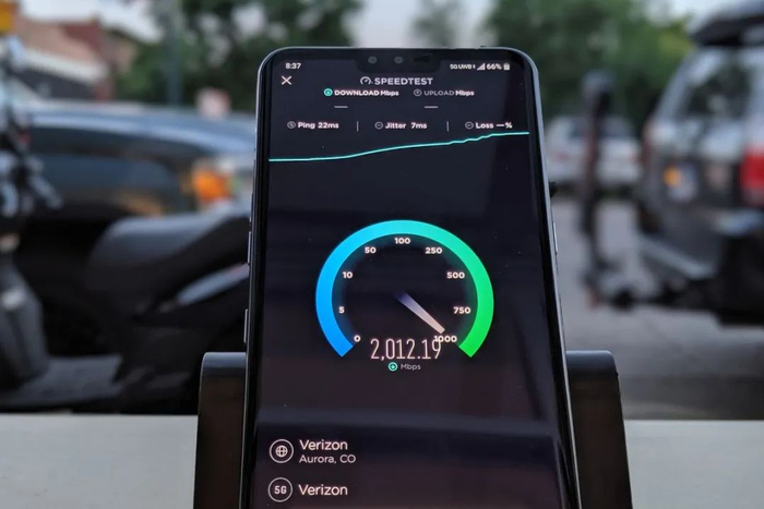 美国Verizon的5G网速,测试速度超过2000Mbps