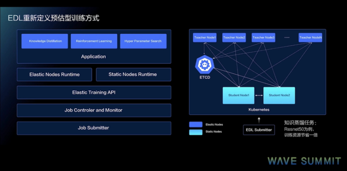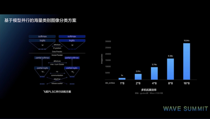 在模型并行方面,新发布的海量类别图像分类方案PLSC,能够实现千万类别规模的分类。在弹性训练方面,开发者可以通过开源的EDL来使用,应用场景可以包括像知识蒸馏、强化学习、超参搜索等等这样的一些预估型的训练方式。